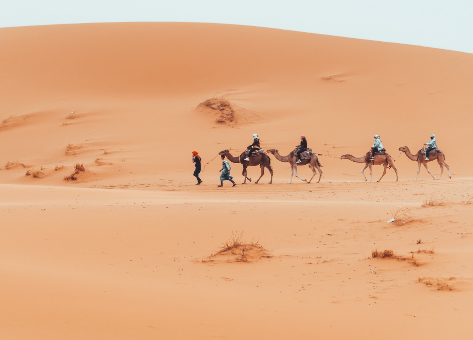 - Camel riding through the desert