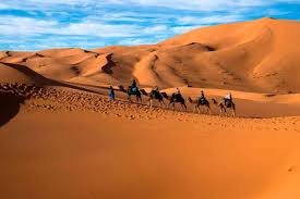 next day of this tour ( 7 Tour Days from Marrakech to Merzouga Desert ) leaving Imilchil village after breakfast, pass through Rich : the gorge of Ziz valley, visit blue Meski source, in Errachidia, continue through the palms of Ziz valley, stop along the valley to take pictures, reach to Erfoud city stop to visit fossils museum and from there start trip to dunes of Erg chebbi in Merzouga, arrive to the dunes before sunset, then ride camels that will pick you to one of high dunes for watch the beautiful view of sunset, then back to the (camp-hotel)